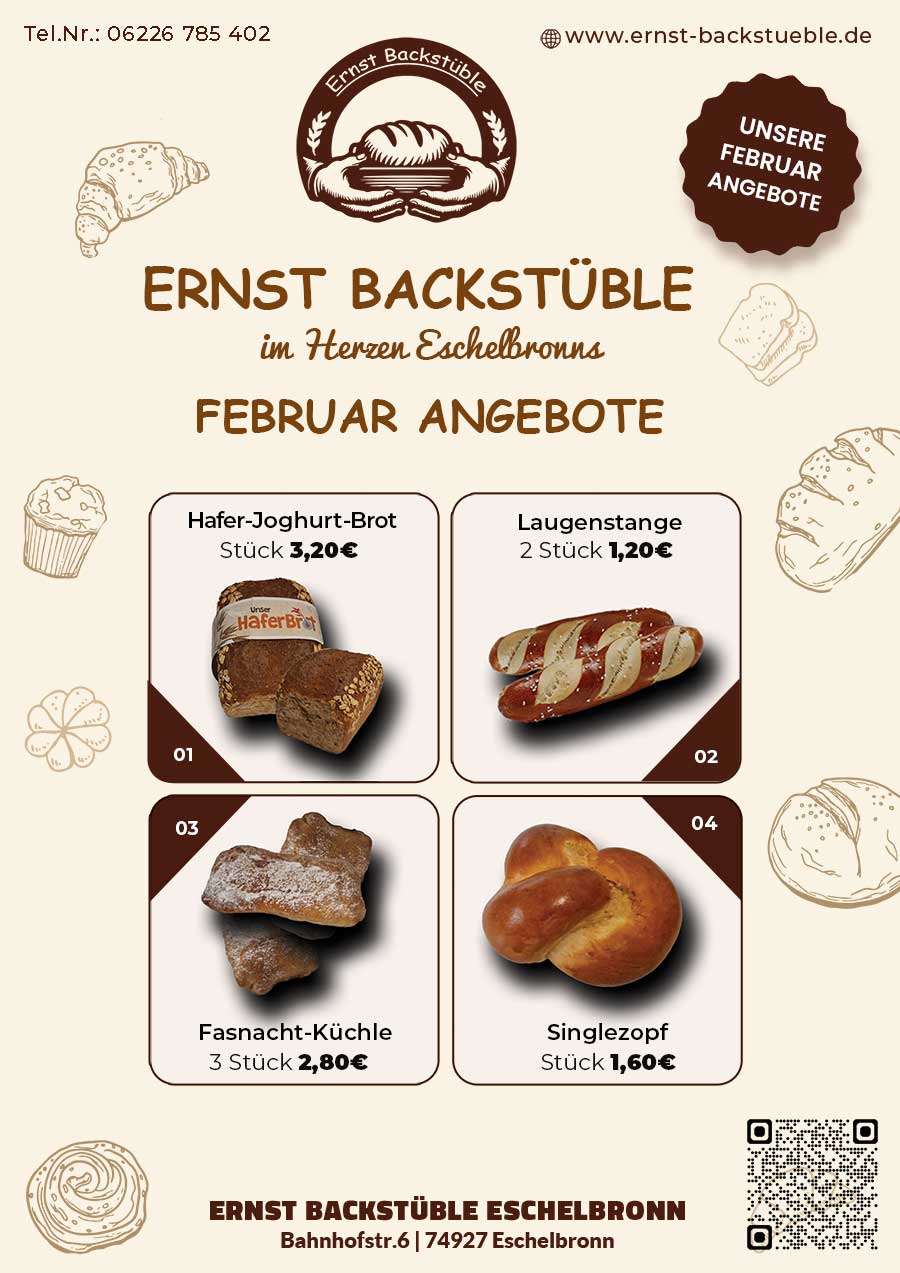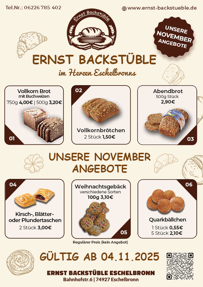 Ernst Backstüble Eschelbronn bietet ein großes Sortiment an Backwaren, das keine Wünsche offenlässt. Ob Sie sich nach einem knusprigen Brot für Ihr Abendessen sehnen, nach Brötchen zum Frühstück, nach süßen Leckereien für den kleinen Hunger zwischendurch oder nach Snacks für die schnelle Mahlzeit – bei uns finden Sie garantiert das Richtige.